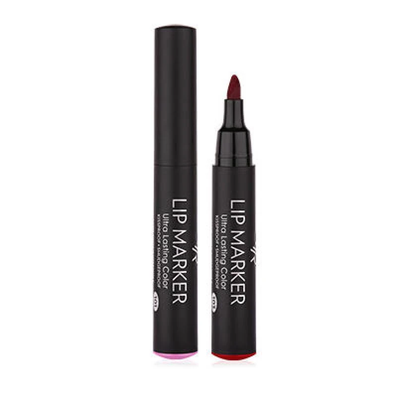 Lip Marker beschikt over een waterverf, dat gemakkelijk glijdt en een natuurlijke levendige tattoo-effect op de lippen geeft. De semi-permanente formule droogt in een paar minuten en laat een lichte film met een vlotte, natuurlijke kleur op de lippen en blijft 12 uur zitten zonder droogheid of vlek. Verrijkt met Aloë Vera en Vitamine E. Voor een glanzende look: Gebruik lipstick, lipgloss of lipbalm nadat de kleur droog is.