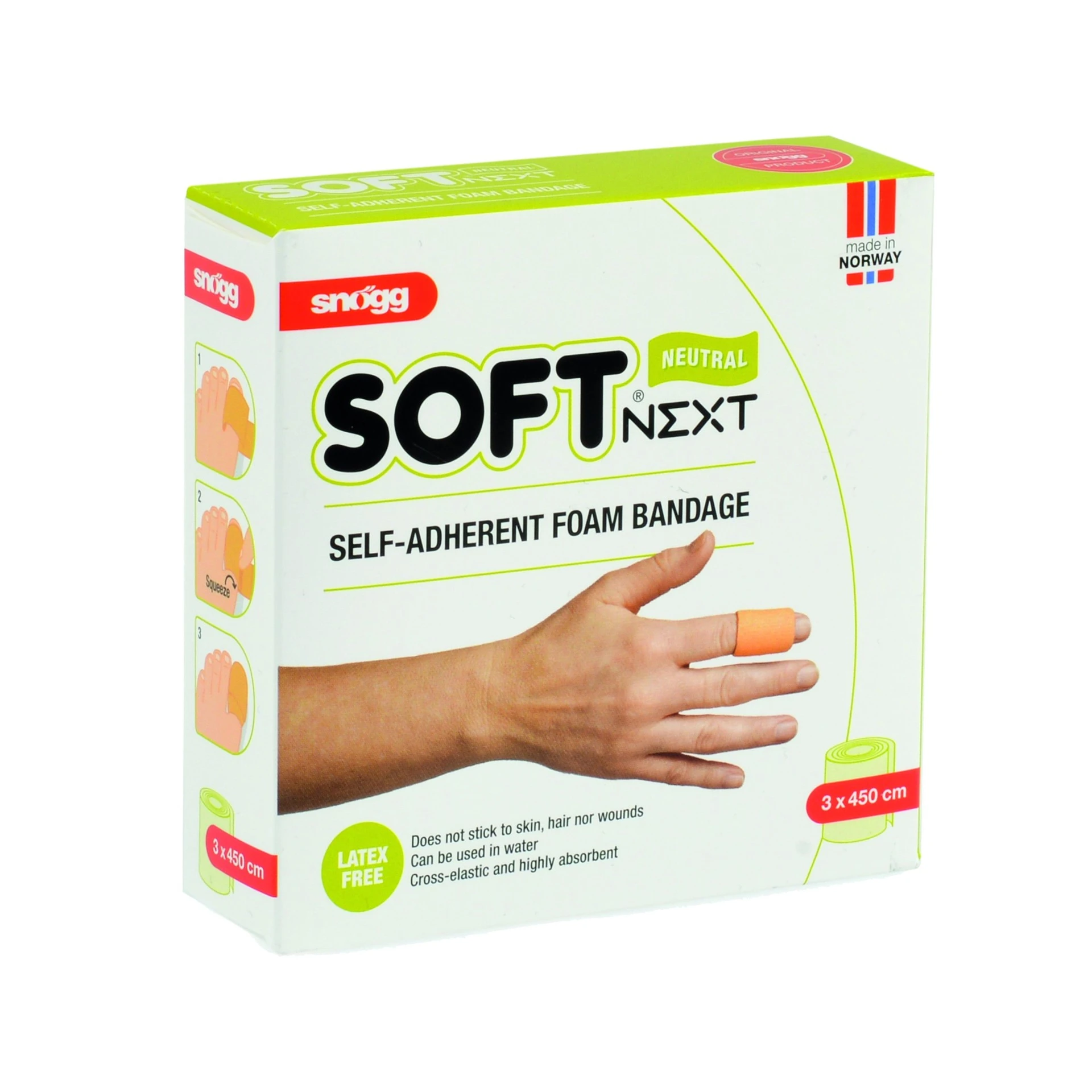 Met de Snogg Soft Next kunnen kleine verwondingen snel verzorgd worden. Het verband is ideaal voor bescherming en fixatie van vinger, pols, hand, voet en teen.