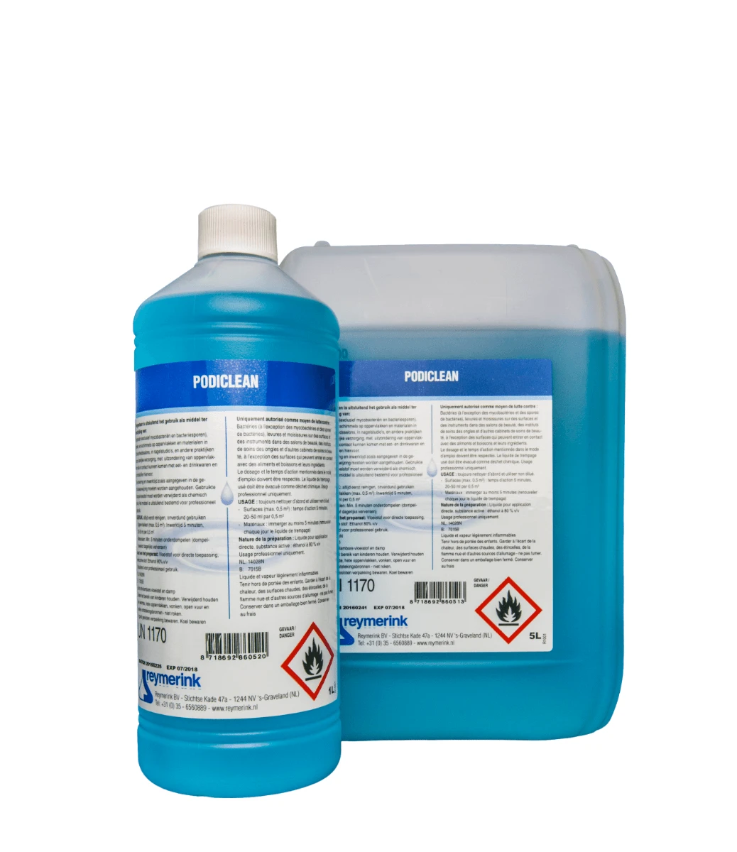 Podiclean is een snel werkende desinfectans tegen bacteriën, virussen, gisten en schimmels. De instrumenten worden gereinigd en gedesinfecteerd door onderdompeling in onverdunde podiclean.