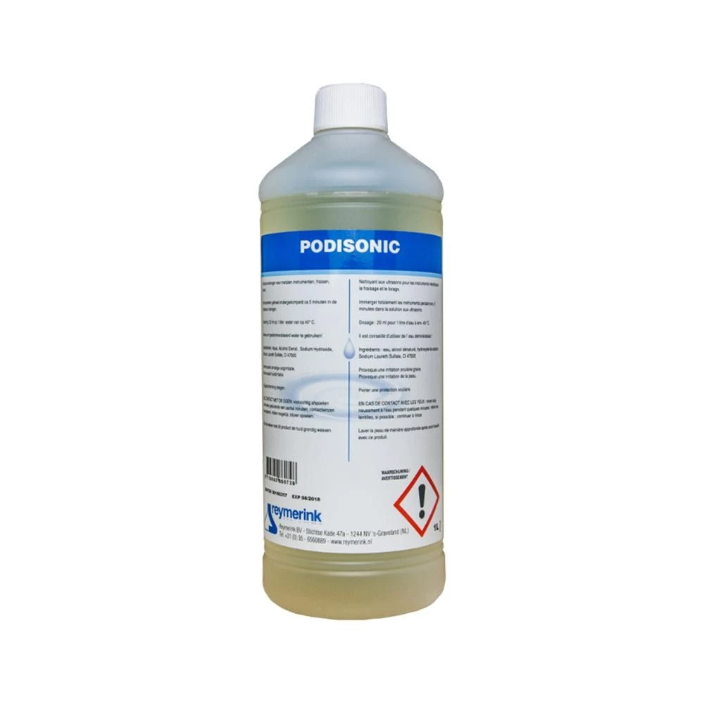 Podisonic is een krachtig reinigingsmiddel voor toepassing in ultrasoon apparatuur. Podisonic is speciaal voor het reinigen van metalen instrumenten, frezen en boren en is economisch in het gebruik.